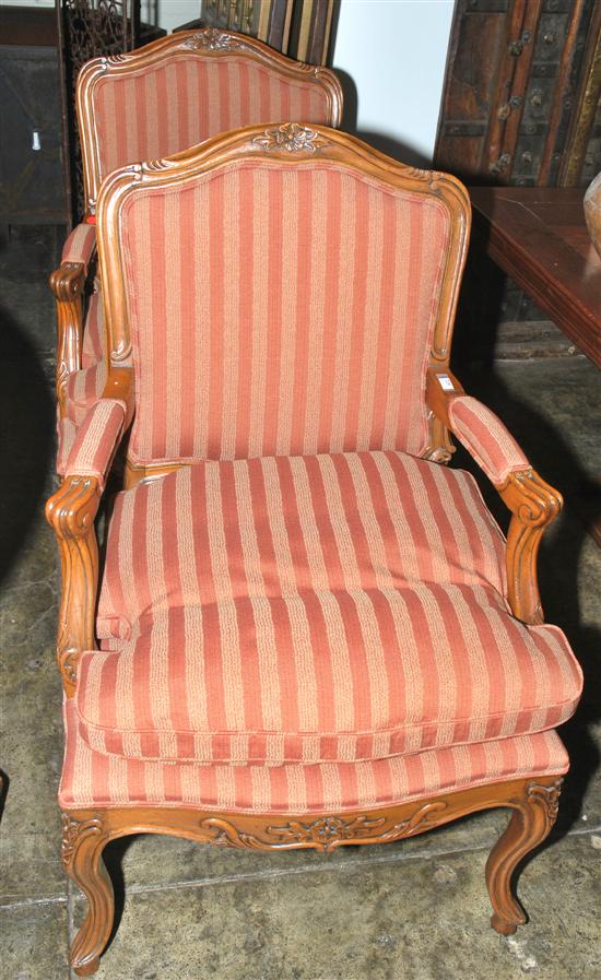 A PAIR OF LOUIS XV STYLE WALNUT FRAMED BERGERES