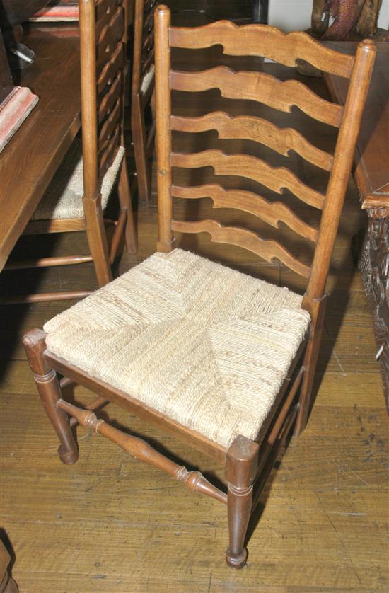 A SET OF SIX OAK LADDER BACK DINING CHAIRS