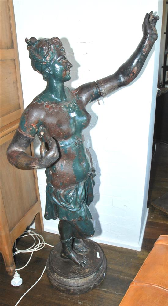 A PAINTED CAST IRON FIGURE OF A SEMI-DRAPED MAIDEN