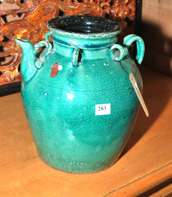 A CHINESE PROVINCIAL GREEN GLAZED WATER JUG