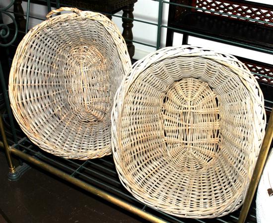 FOUR WOVEN CANE BASKETS The largest basket, 66cm wide.