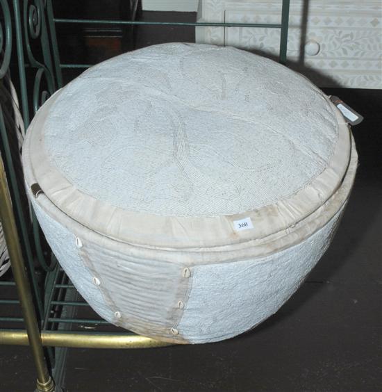 With a compressed cylindrical body above a domed cover, with woven beadwork foliate panels, 53cm diameter x 39cm high.