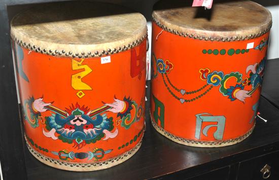 TWO MOROCCAN PAINTED WOODEN DRUMS