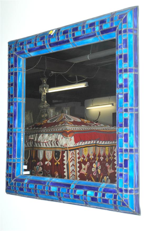 The rectangular plate within a multi coloured glass surround, 84.5 x 84.5cm