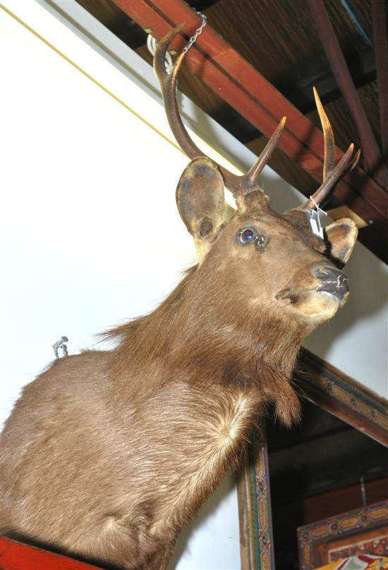 A TAXIDERMIED RED DEER SHOULDER MOUNT