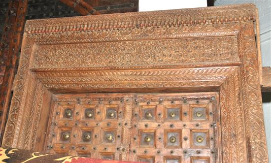 AN INDIAN TEAK TEMPLE DOOR AND FRAME