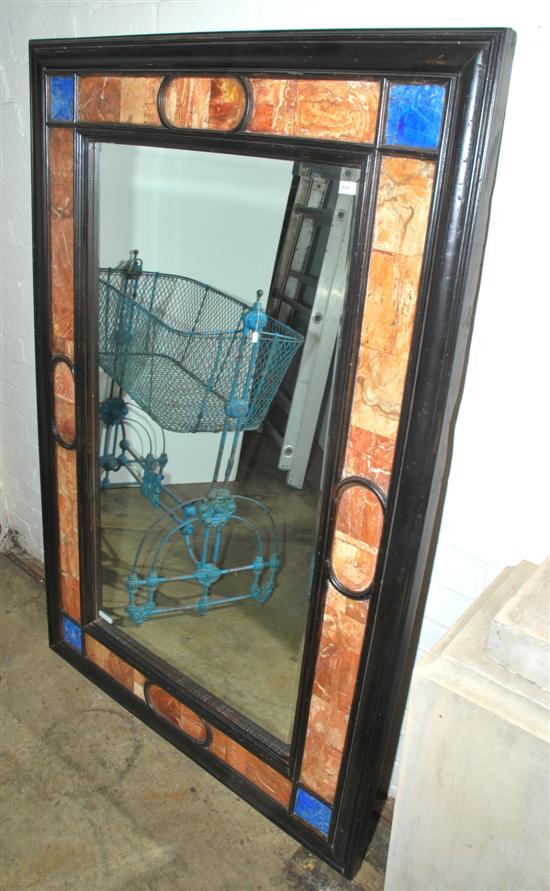 AN EBONISED AND HARDSTONE FRAMED WALL MIRROR