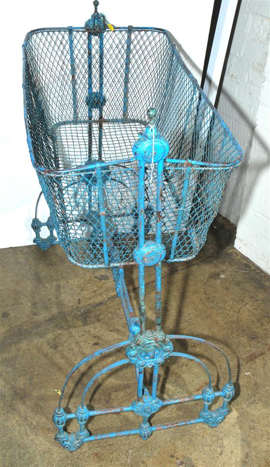 The wire meshed body within a cast iron open worked support, 94 x 100 x 46cm.