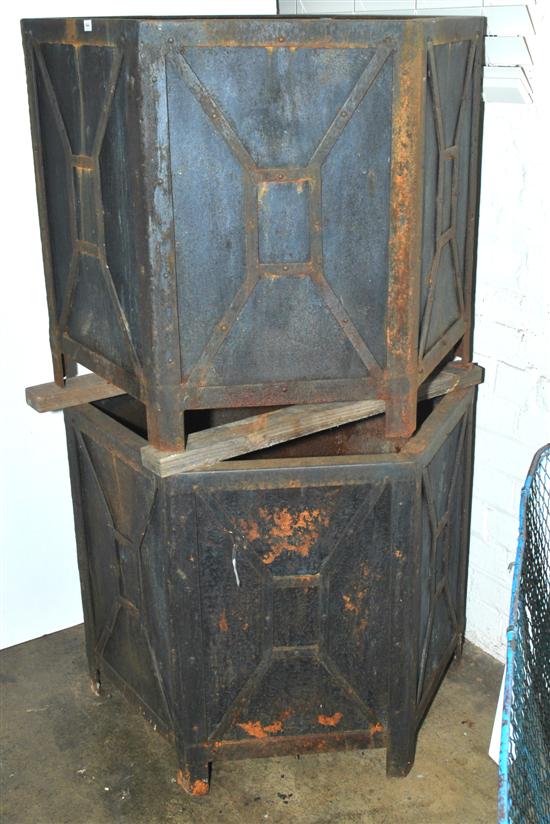 A PAIR OF HEXAGONAL STEEL PLANTERS