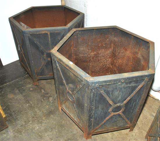 A PAIR OF HEXAGONAL STEEL PLANTERS