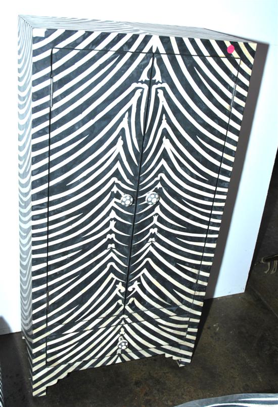 A PAIR OF SIMULATED ZEBRA STRIPE SIDE CABINETS*