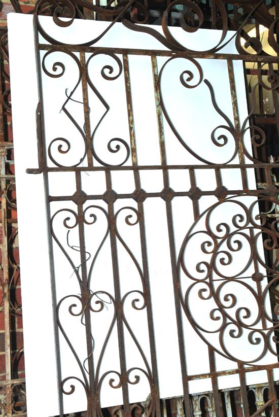 AN IMPRESSIVE PAIR OF INDIAN TEAK IRON AND BRASS DOORSEach door with a central arched panel applied with brass and iron strap work ...