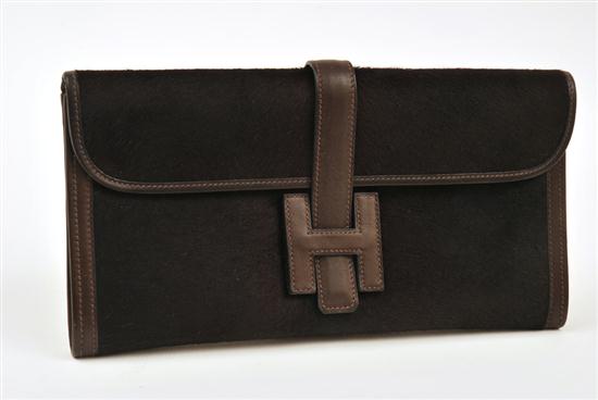The 28cm bag styled in chocolate pony skin with complimenting leather trim, boxed.