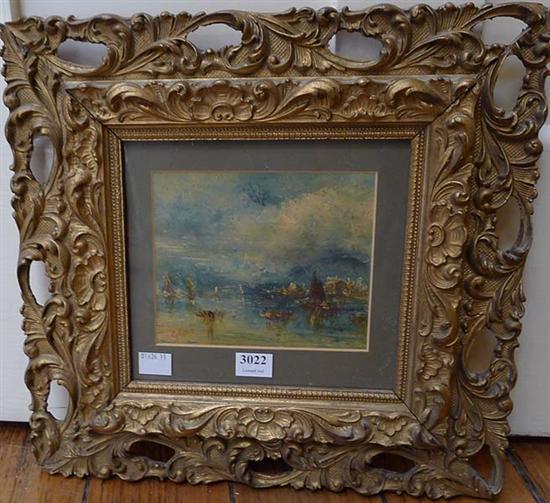 SIGNED GULLINI, BOATS AT THE HARBOUR, OIL ON BOARD, 12.5 X 14CM