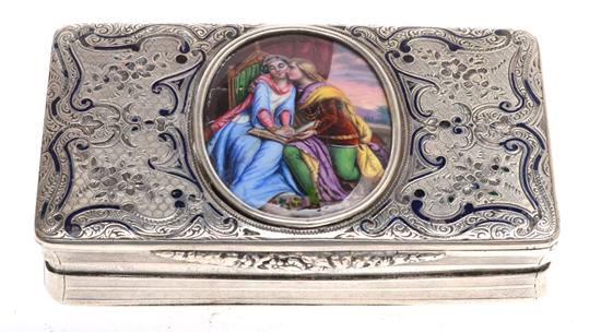 A FRENCH SILVER AND ENAMEL VANITY BOX