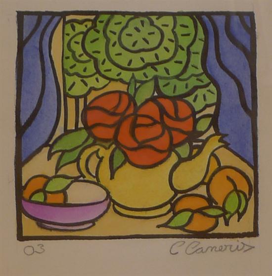 C CAMERIS, TWO STILL LIFE WORKS, LINOCUTS