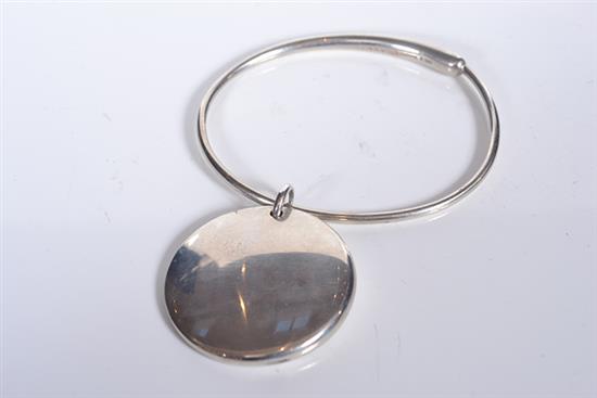 Designed by Jacqueline Rabun, the 100 Zero Centenary anniversary oval bangle with large circular disc charm, in sterling silver, reference 450 'S'.