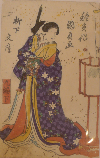 KUNISADA AND KUNITERU (JAPANESE), TWO WOODBLOCK PRINTS OF KABUBI ACTORS. PURCHASED FROM THE MATSUSHITA ASSOCIATES, 2F ORIENTAL BAZAAR BUILDING, 9 - 13 JINGUMAE, 5 - CHOME SHIBUYA - KU, TOKYO