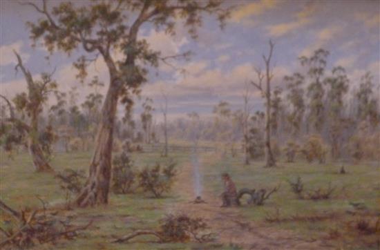 PRO HART, FIGURE BY THE LAKE, OIL ON PAPER, 19.5 X 49CM