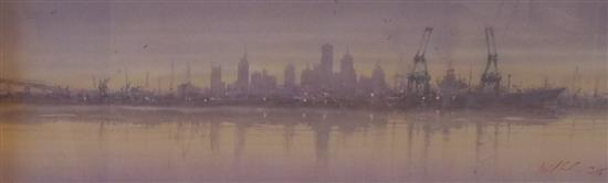 JOSEPH ZBUKVIC, LOADING CRANES, 1996, WATERCOLOUR, 17 X 54.5CM