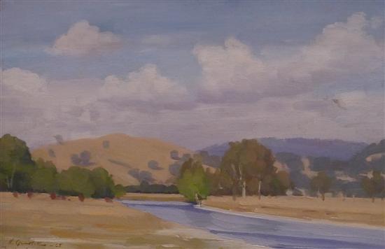 HARLEY CAMERON GRIFFITHS, BARWON RIVER 1965, OIL ON BOARD, 25 X 40CM