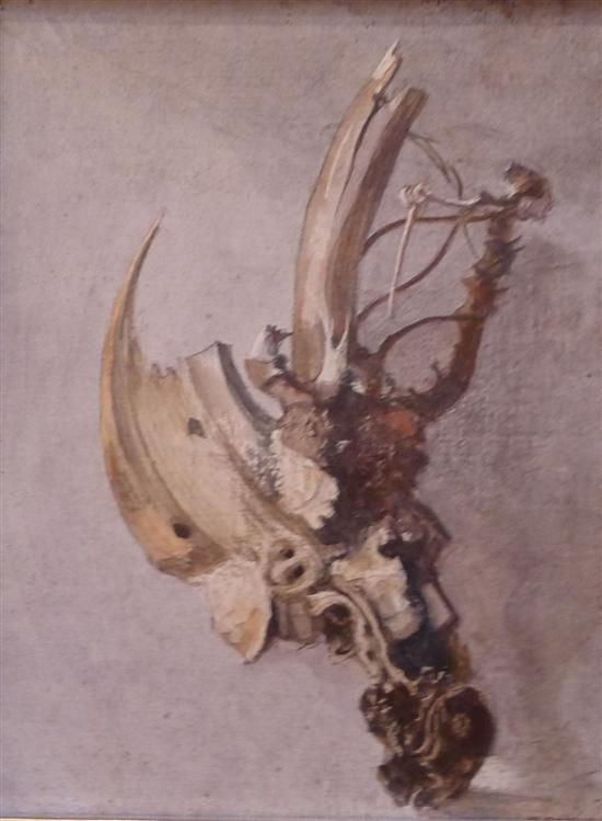 HELEN OGILVIE, BONES, OIL ON BOARD, 14.5 X 11.5CM