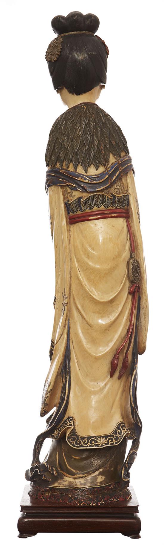 A LARGE CHINESE 19TH CENTURY POLYCHROME IVORY FIGURE OF A LADY