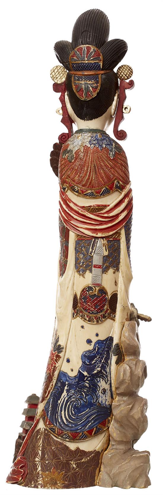 A LARGE JAPANESE 19TH CENTURY POLYCHROME IVORY FIGURE OF A LADY