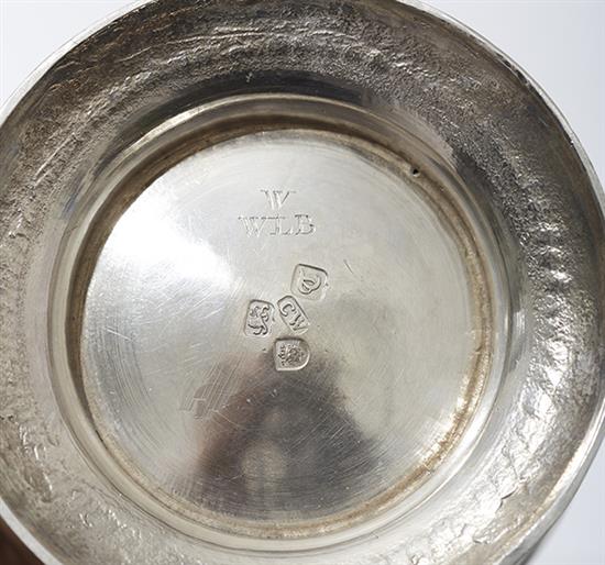 Of baluster form, the domed-hinged cover with acorn finial and gadrooned rim, the wood scroll handle with shell moulded junction, with acanthus scroll moulded spout, on a gadrooned circular foot, engraved with armorial cartouche, 742 grams, 26cm high.