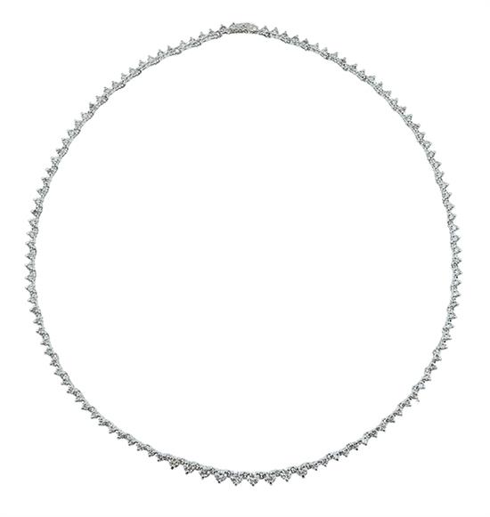 Comprising one hundred and twenty graduated round brilliant cut diamonds totalling 4.26cts, mounted in 18ct white gold, total length 450mm.