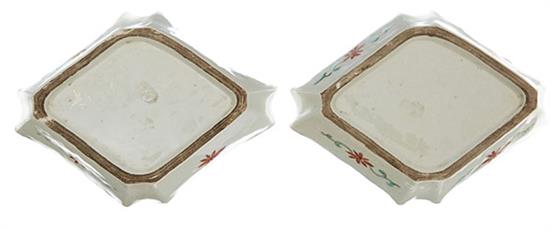 Of rhombic shape with famille rose decoration, depicting birds and flowers, previously used as appetizer plates, 22cm diameter.