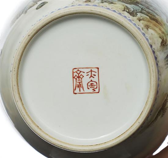 With famille rose pattern, decorated with mountains, rivers, people and houses, 39.5cm high.