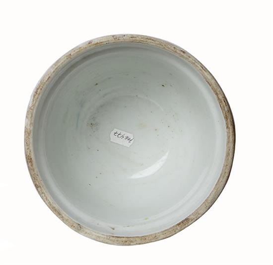 The base of bell form supporting the wide rimmed drip tray and tapered central funnel, profusely painted with auspicious symbols and flowers on a foliate scroll ground, 40cm high.