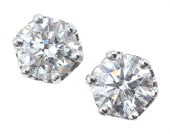 Each set with a round brilliant cut diamond of 1.06cts, mounted in 18ct white gold.