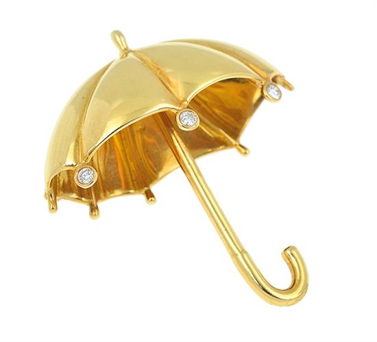 Modelled as an umbrella set with three round brilliant cut diamonds, mounted in 18ct gold.
