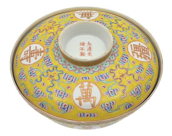 A FAMILLE ROSE YELLOW-GROUND COVERED BOWL