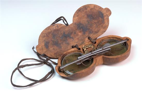 TWO PAIRS OF TIBETAN SPECTACLES, both with articulated arms, the largest case 15cm long