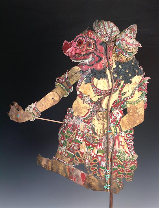 TWO JAVANESE WAYANG PUPPETS AND A MALAYSIAN PUPPET, the Malaysian puppet 134.5cm high