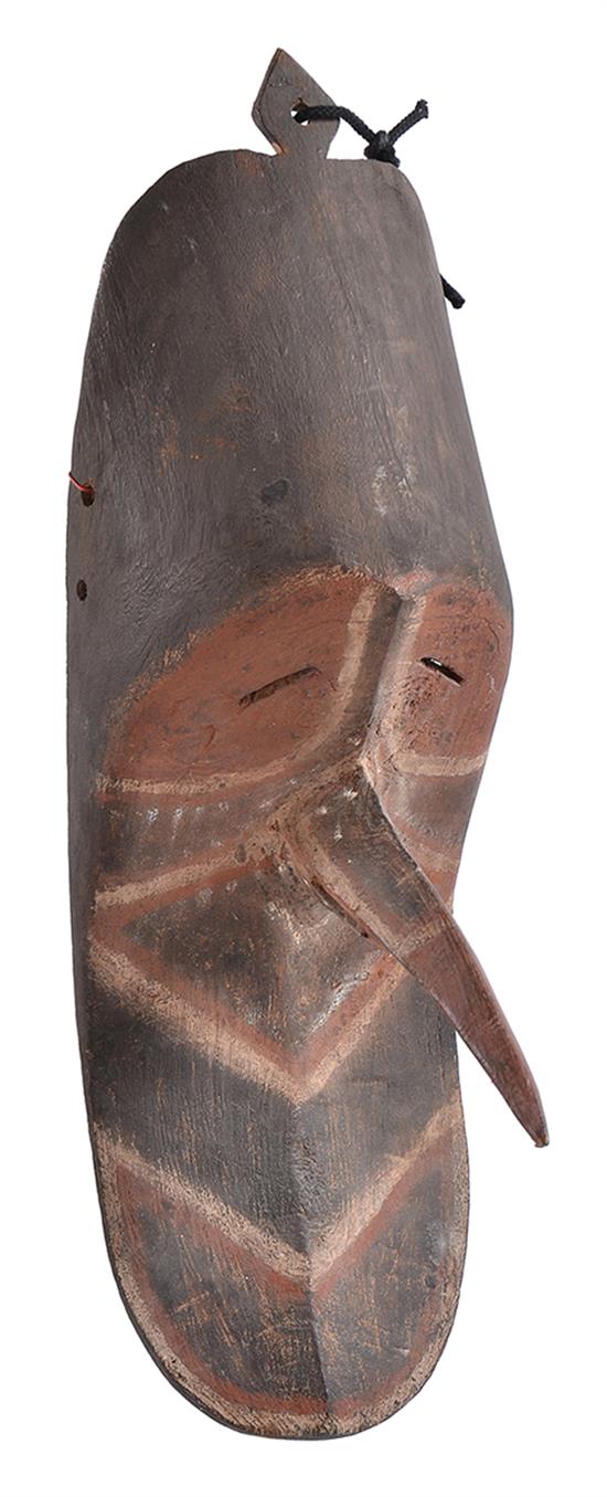 A PNG ANCESTOR MOSQUITO MASK, MAMBE VALLEY, SEPIK RIVER, bulging forehead, prominently pointed nose, recessed chin, 48 x 15cm