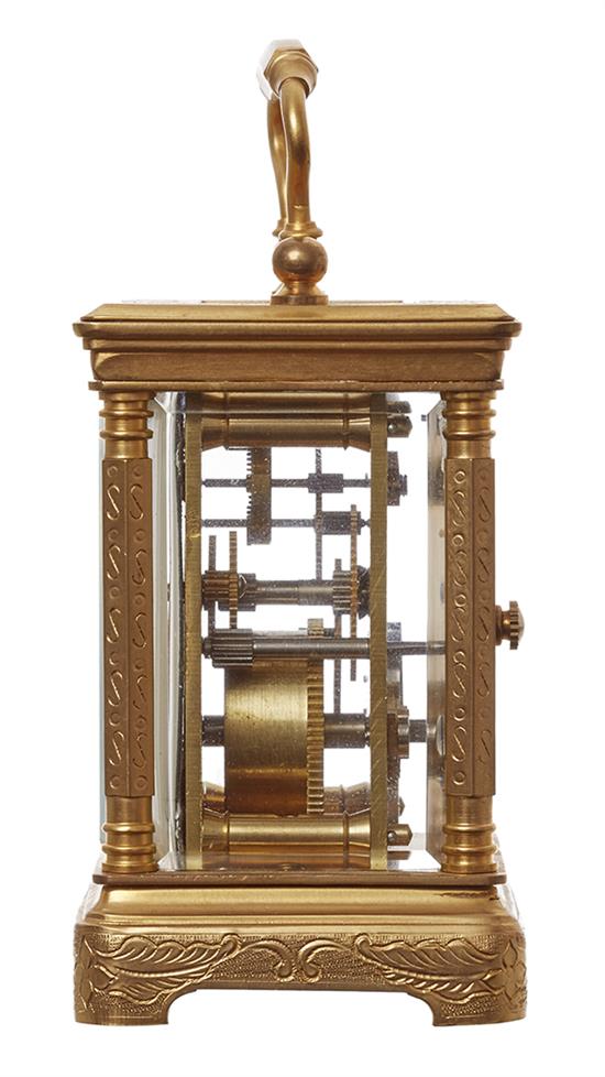 A GILT BRONZE CARRIAGE CLOCK OF SMALL PROPORTIONS