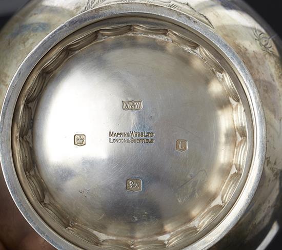 AN ENGLISH SILVER NURSERY RHYME BOWL BY MAPPIN AND WEBB, TOGETHER WITH A DANISH SILVER SERVING SET BY COHR