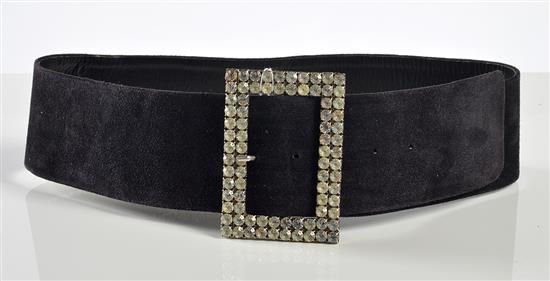 The wide belt styled in black suede, with diamante buckle, total length 86cm.
