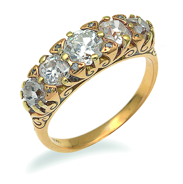 A VICTORIAN STYLE FIVE STONE DIAMOND RING