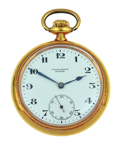 A ZENITH GOLD CHRONOMETER OPEN FACE POCKET WATCH