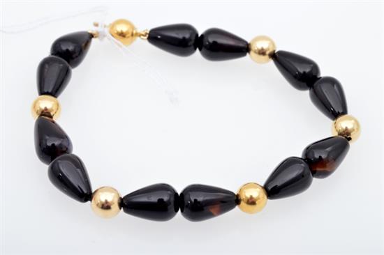 A BLACK ONYX AND 14CT GOLD BRACELET