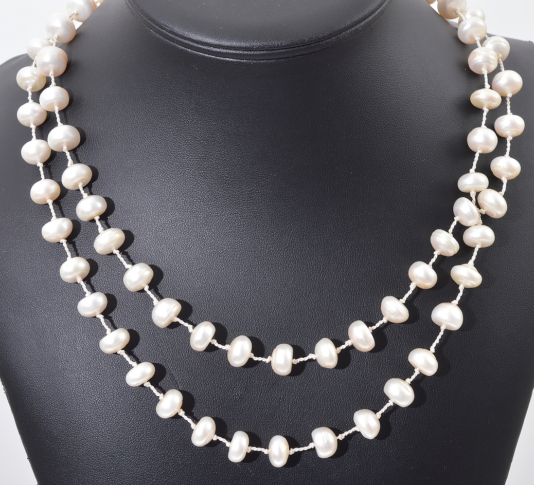 The baroque freshwater pearls individually knotted to an oval pierced clasp set with garnet, mounted in 22ct gold, total length 1100mm.
