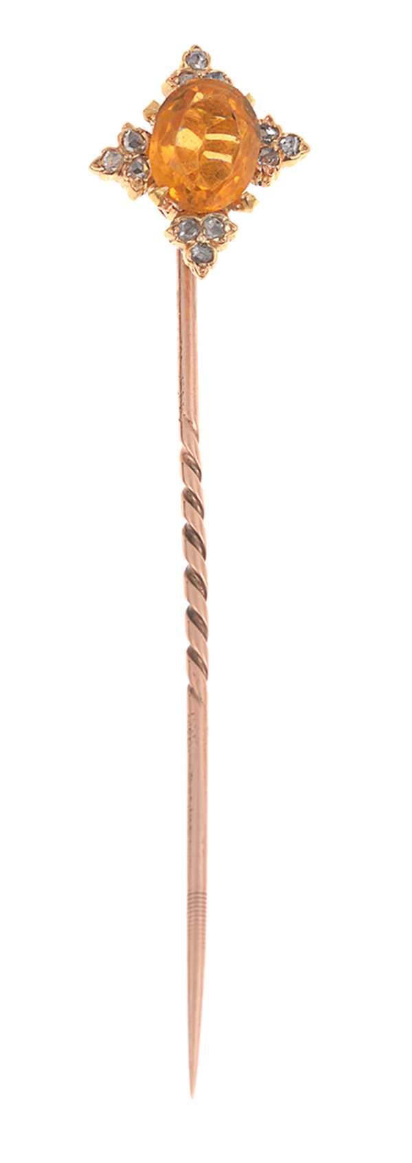 AN ANTIQUE CITRINE AND DIAMOND STICK PIN