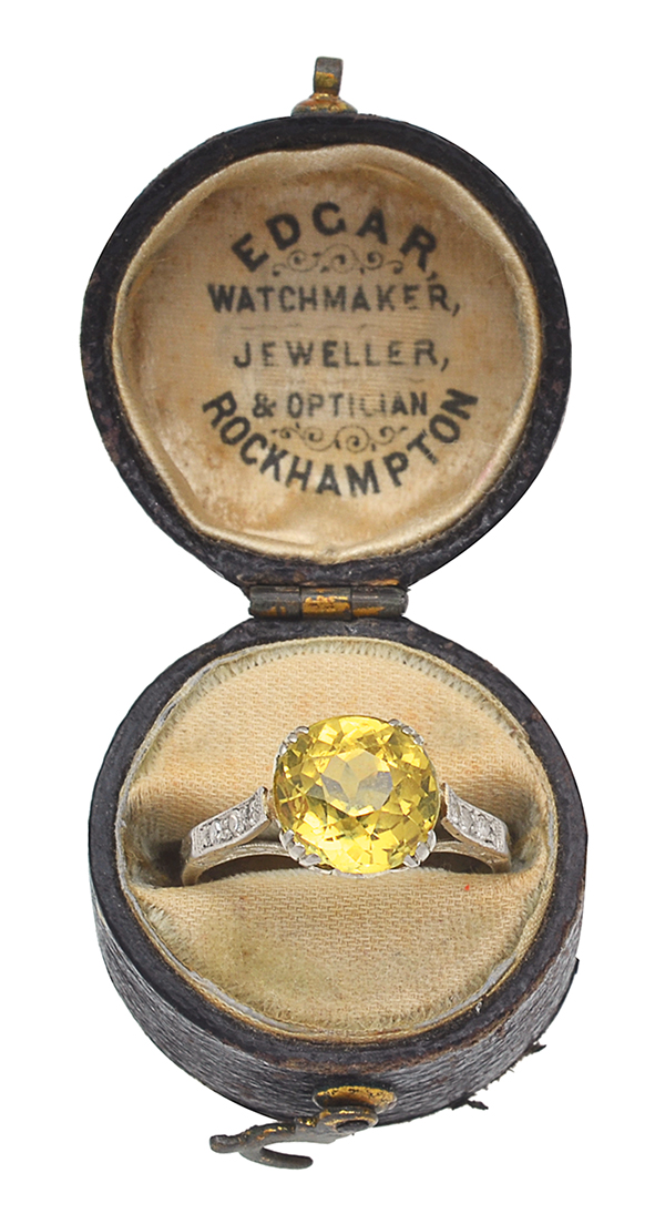 AN ANTIQUE YELLOW SAPPHIRE AND DIAMOND RING