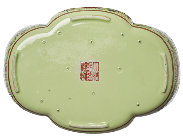 All over lotus decoration on green ground. 14cm long.
