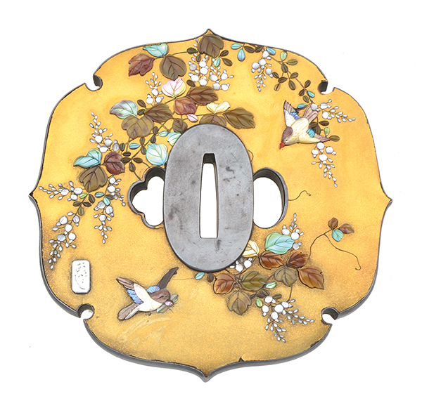 A 19TH CENTURY FINE SHIBAYAMA GOLD LACQUER TSUBA, MEIJI PERIOD